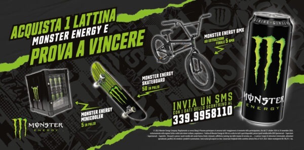 A partire dal 21 ottobre 2024 e fino al 24 novembre 2024, acquista una lattina di Monster Energy da 500 ml a scelta tra tutti i gusti e prova a…